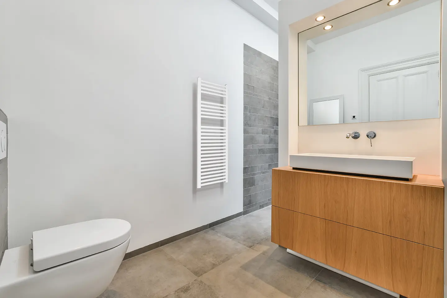 Para el sistema de calefacción se han instalado más de 450 radiadores de aluminio de baja temperatura KERMI KERMIX2 PROFILE-K tipo 22 en diferentes dimensiones para las estancias principales, junto con un total de 140 unidades de toalleros hidráulicos CICSA ZETA T en acabado blanco (modelos 1200/600 y 1200/550) en los baños.