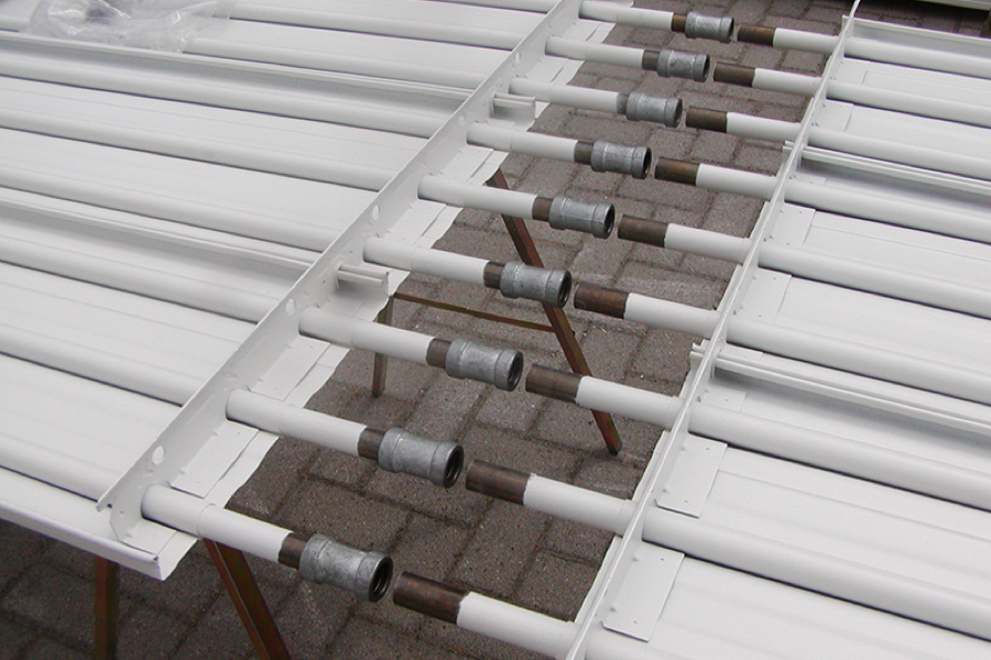 • En versión estándar: paneles provistos de tubos de 1,5 mm de grosor, 1/2” de diámetro externo, realizados mediante electrosoldadura de cinta de calidad laminada en frío. Idóneos para ser usados con una presión de ejercicio de hasta 4 bar y una temperatura máxima del fluido igual a 120°. Bajo petición, petición se pueden suministrar paneles para funcionar entre 4 y 10 bar de presión.
