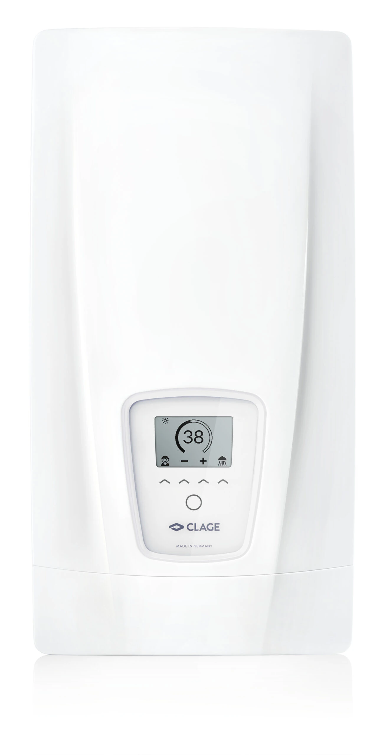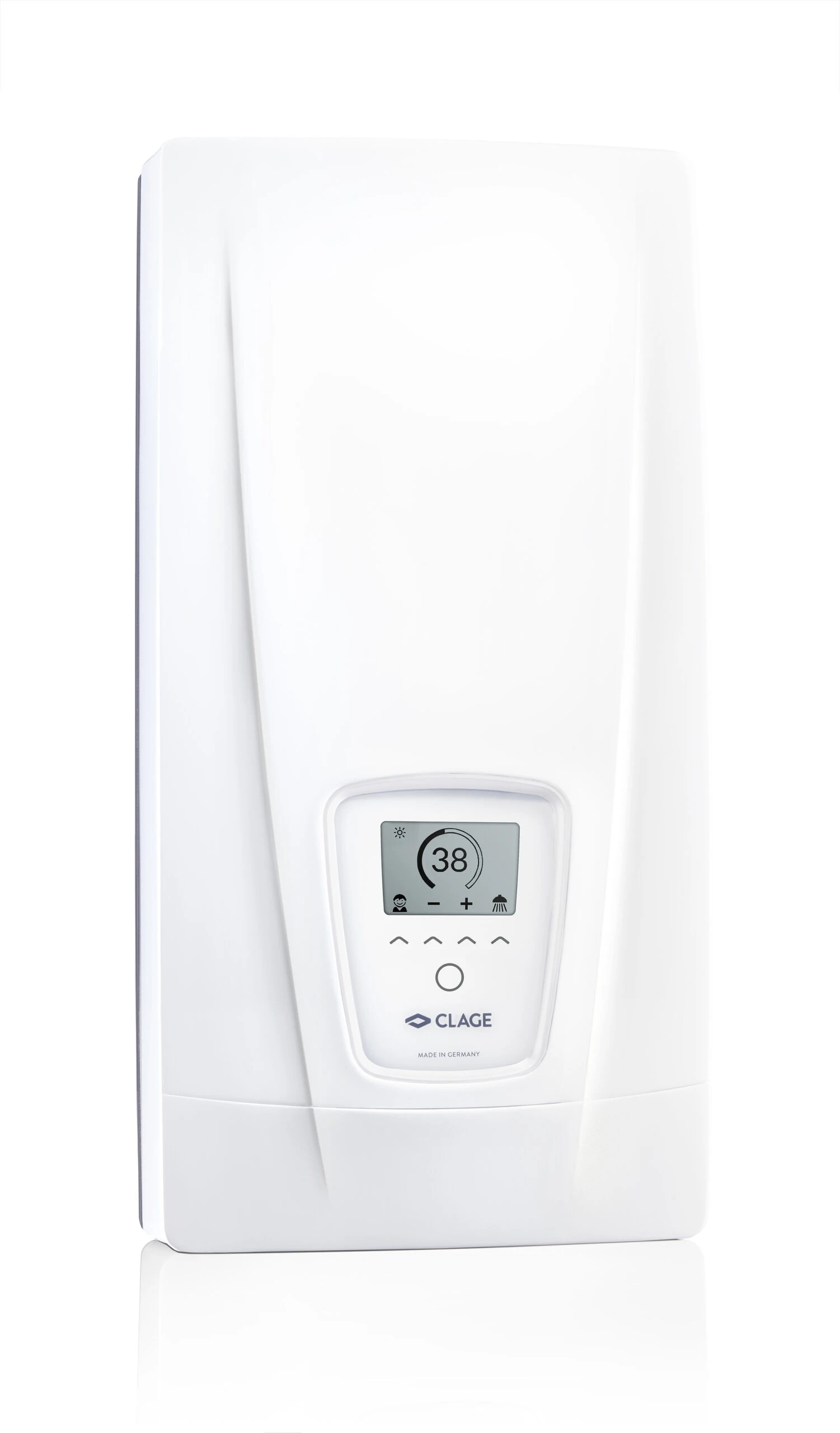 Calentador de agua instantáneo TECNA CLAGE DEX NEXT con E-comfort controlado electrónicamente con pantalla E-Paper y teclas de sensor.