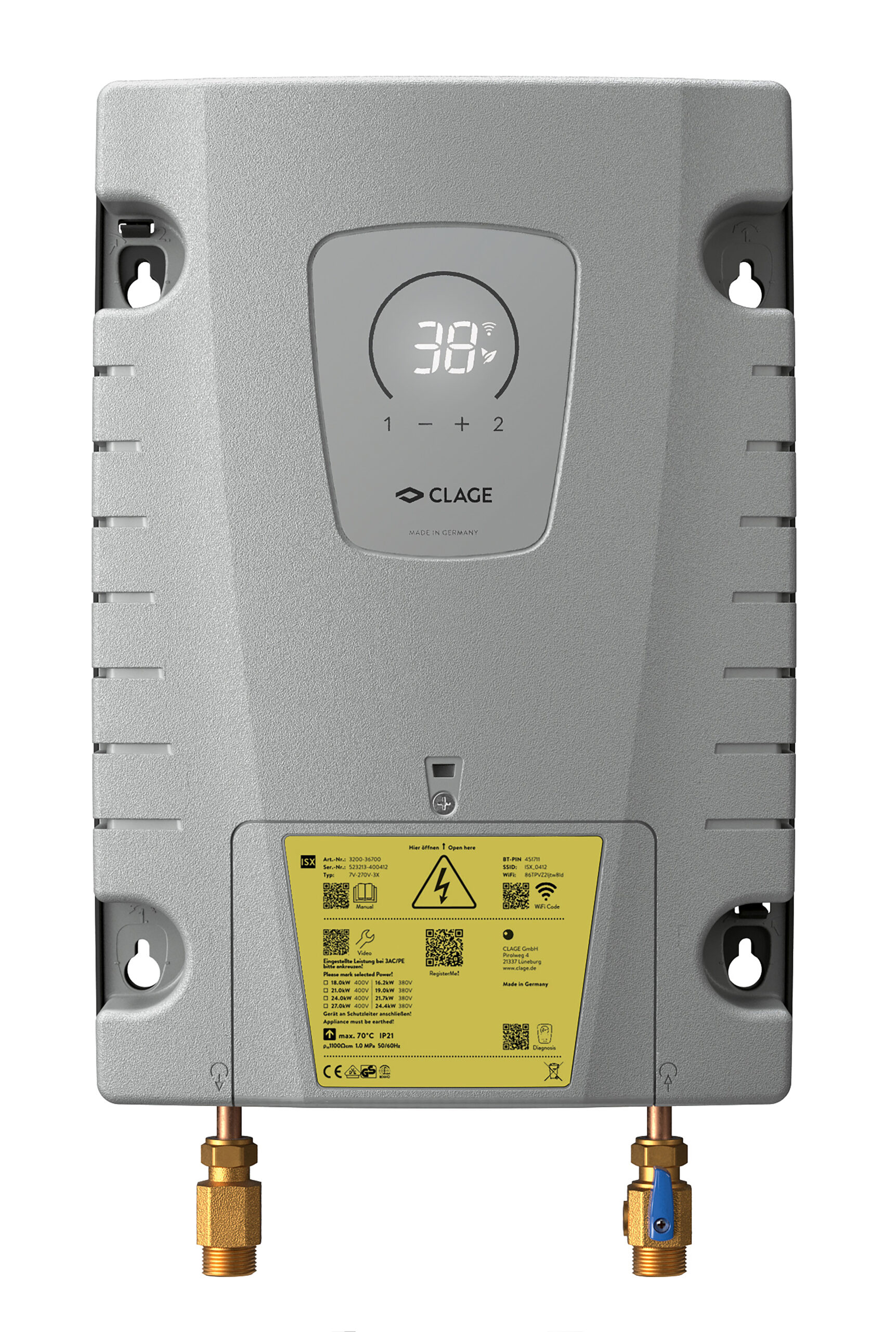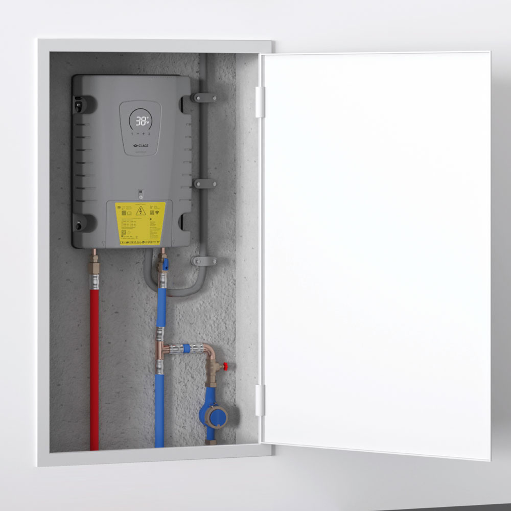 Los calentadores de agua instantáneos TECNA CLAGE son una solución de ahorro energético. El agua no se precalienta y almacena, sino que sólo se calienta cuando es necesario: directamente en el grifo. Debido a sus pequeñas dimensiones, los calentadores están indicados para uso residencial, para pequeños lavabos y también en el sector comercial e industrial, principalmente para instalaciones trifásicas. ISX, ISX 12 e ISX 13, para su aplicación en lavabos. La serie trifásica es especialmente conveniente para su incorporación en varios lavabos, ducha y ducha junto con lavabo. El eficiente sistema de calefacción por hilo desnudo IES® reduce la cal depositada y proporciona una vida útil extendida. Indicador LED con teclado táctil para la regulación precisa de la temperatura del agua entre 20º a 55-60ºC.