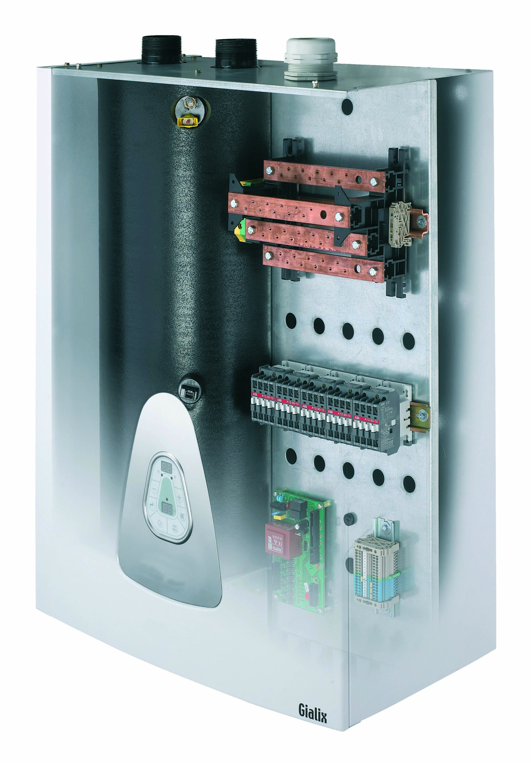 La caldera eléctrica mural TECNA AIRELEC GIALIX combina la regulación electrónica más efectiva con la calidad excepcional del cuerpo de calentamiento en fundición de acero al carbono, lo que garantiza una temperatura del agua perfectamente regular y permitea esta caldera de ser muy compacta. Concebida para todo tipo de instalaciones (calefacción central, apoyo a energías renovables ó bombas de calor y geotérmia) tanto en viviendas de nueva construcción como para rehabilitación.