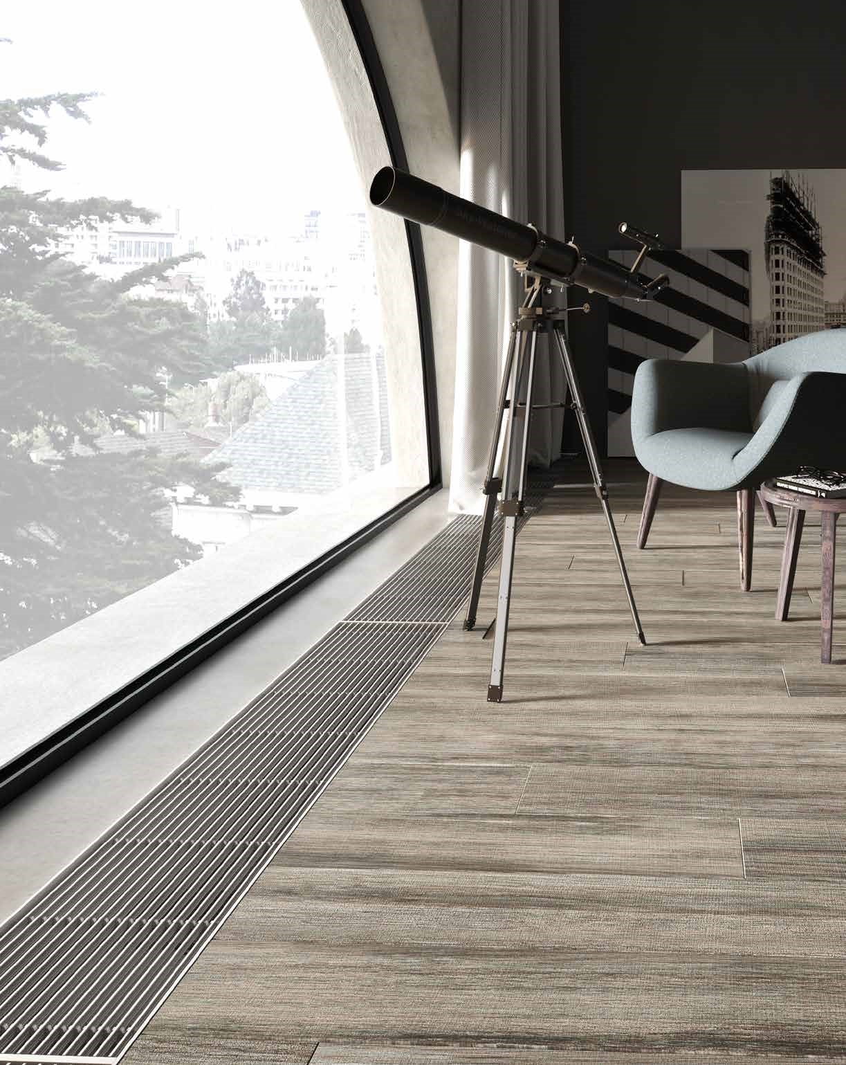 Una combinación innovadora con una estética de alto nivel y máxima funcionalidad. Destinados a ir encastrados en el suelo, especialmente en lugares en los que hay grandes ventanas o puertas acristaladas. Su uso es ideal tanto para edificios de uso público como para uso residencial. Se encuentran disponibles para calefacción y refrigeración. Suponen ahorros de hasta 8% respecto a un sistema tradicional.