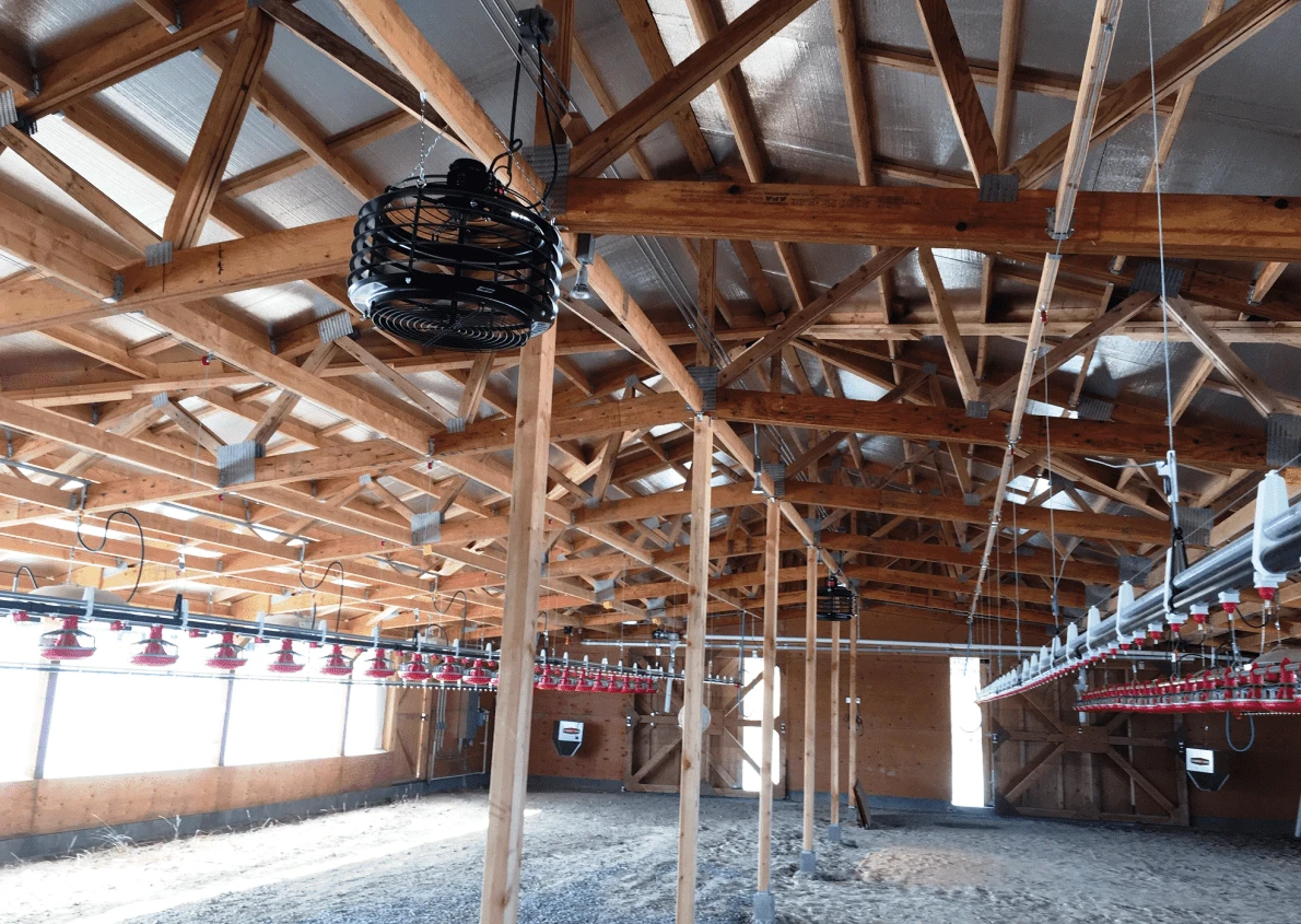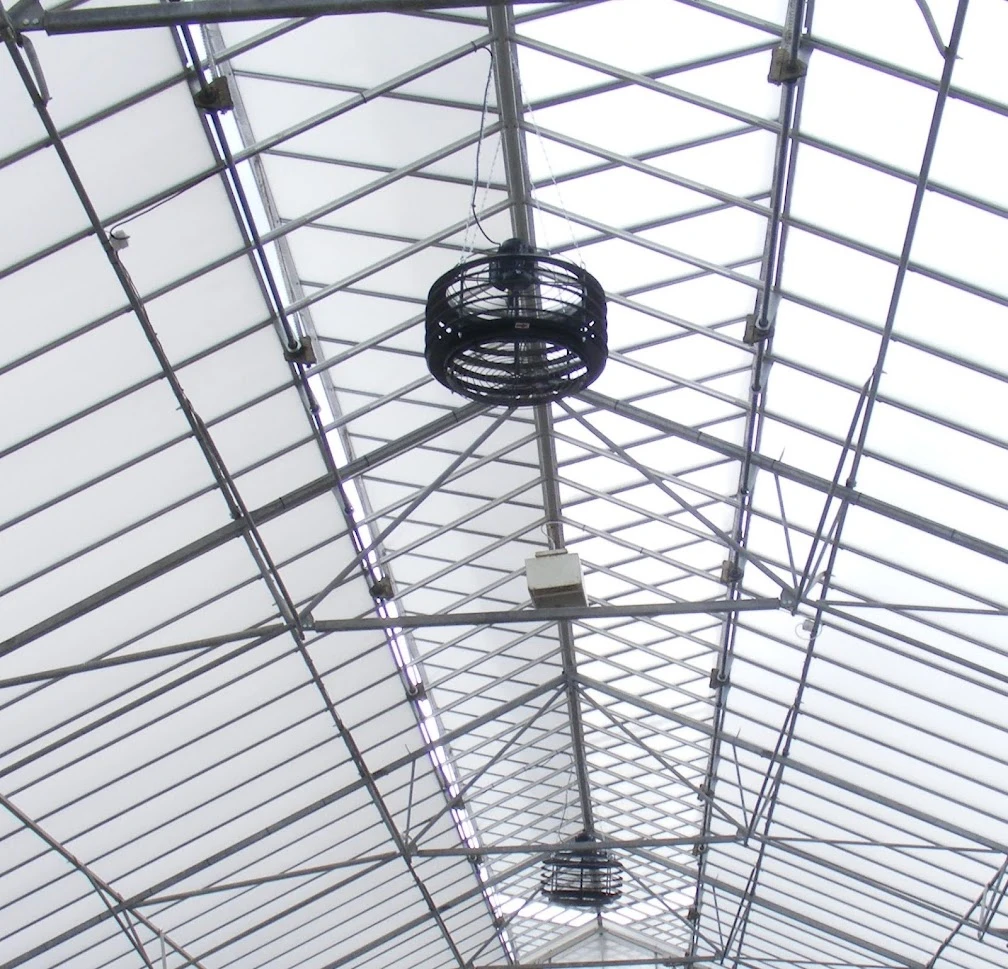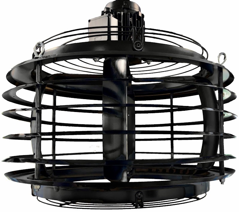 Ventilador mezclador que distribuye uniformemente el aire en grandes edificios industriales, deportivos, amplios espacios públicos y agrícolas.