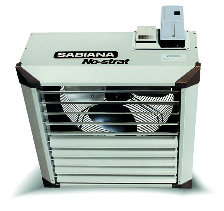 Los desestratificadores de aire TECNA SABIANA NO-STRAT son el complemento perfecto en instalaciones de calefacción por aire (como aerotermos) al recircular el aire caliente hacia abajo que tiende a estratificarse hacia arriba por su diferente densidad. El control termostático en cada aparato permite configurar la temperatura del aire a la que entra en funcionamiento el desestratificador. También, son idóneos para aumentar la tasa de recirculación de aire en el volumen y mejorar la uniformidad de temperatura ambiente, siendo muy efectivos en instalaciones de hasta 13 m de altura. La gama incluye 8 modelos, con caudales de 2.800 a 13.200 m3/h.