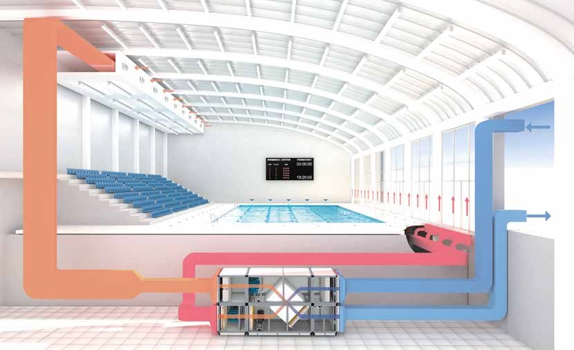 Las unidades de tratamiento de aire TECNA SABIANA NEPTUN están específicamente diseñadas y fabricadas con el doble objetivo de mantener un correcto nivel de humedad en el interior de las piscinas cubiertas y, al mismo tiempo, garantizar un alto nivel de confort para los usuarios. Todas las UTAs NEPTUN están totalmente reguladas y equipadas con una interfaz de usuario fácil de manejar. La serie NEPTUN consta de dos versiones: la versión estándar en horizontal (Neptun) y la versión vertical con tomas en la cara superior (Neptun-V). Para cada configuración está disponible la versión HP, que integra en su interior una unidad frigorífica con bomba de calor. Las unidades NEPTUN HP están disponibles en 14 tamaños con caudales de hasta 33.500 m3/h, mientras que las unidades NEPTUN-V HP están disponibles en 4 tamaños con caudales de hasta 5.200 m3/h. La versión NEPTUN-HP está diseñada para todo tipo de piscinas, y con una amplia gama de parámetros de ajuste. Dispone de recuperador de calor de dos fases en el intercambiador de calor de placas y en la bomba de calor, lo que permite lograr un alto nivel de deshumidificación y tener un rápido retorno de la inversión. Es adecuada para hoteles, Spas, piscinas públicas y polideportivos de grandes dimensiones.