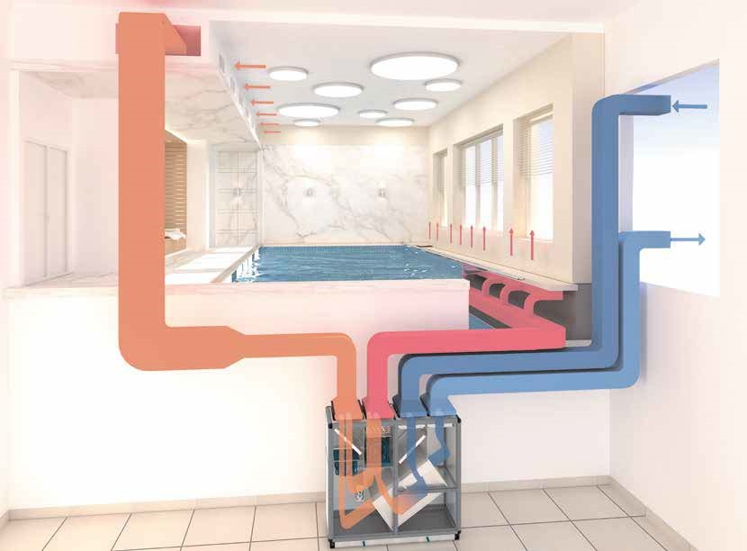 Las unidades de tratamiento de aire TECNA SABIANA NEPTUN están específicamente diseñadas y fabricadas con el doble objetivo de mantener un correcto nivel de humedad en el interior de las piscinas cubiertas y, al mismo tiempo, garantizar un alto nivel de confort para los usuarios. Todas las UTAs NEPTUN están totalmente reguladas y equipadas con una interfaz de usuario fácil de manejar. La serie NEPTUN consta de dos versiones: la versión estándar en horizontal (Neptun) y la versión vertical con tomas en la cara superior (Neptun-V). Para cada configuración está disponible la versión HP, que integra en su interior una unidad frigorífica con bomba de calor. Las unidades NEPTUN HP están disponibles en 14 tamaños con caudales de hasta 33.500 m3/h, mientras que las unidades NEPTUN-V HP están disponibles en 4 tamaños con caudales de hasta 5.200 m3/h. La versión NEPTUN-V está diseñada para SPA y piscinas con una superficie pequeña. Unidad compacta de alta eficiencia gracias a la doble etapa de recuperación. Es adecuada para la deshumidificación de habitaciones, Spas y piscinas privadas instaladas en zonas donde el aire exterior se caracteriza por una baja humedad.