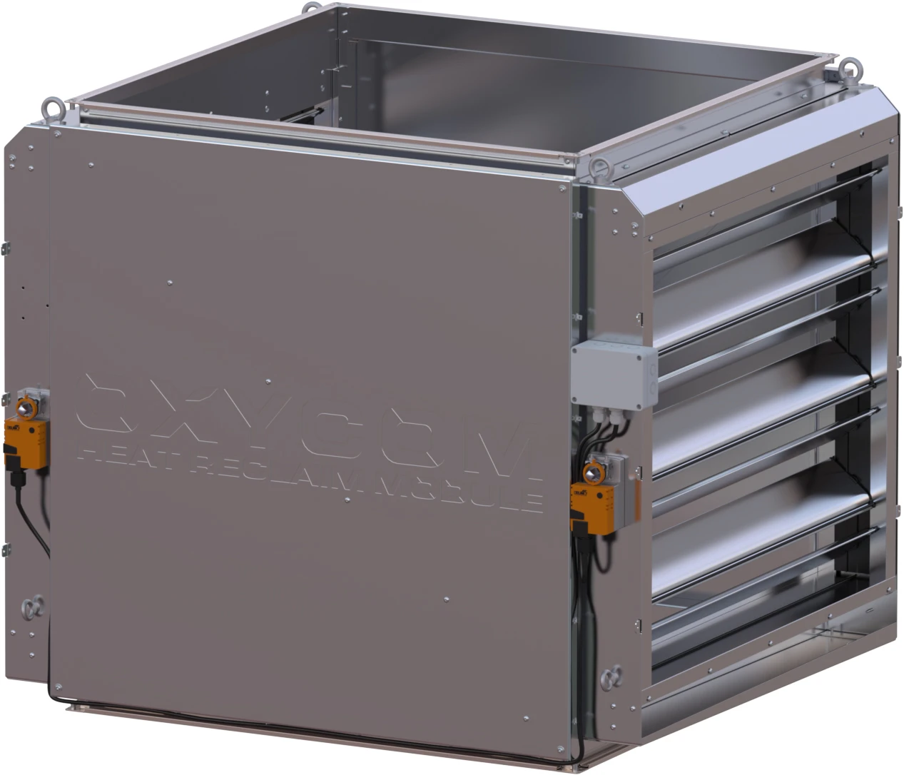 Complemento opcional para calefacción, formado por compuertas automatizadas para la recirculación del aire caliente interior (con posibilidad de filtrado F7) más una compuerta de aire exterior para introducir aire limpio en el interior. Incluye los cables de sujeción. La recirculación de aire se combina con aire fresco de manera modulante. El calor acumulado en el techo, generado por factores internos y externos, se utiliza para mantener una temperatura de suministro adecuada mientras se ventila o se compensa la baja presión.