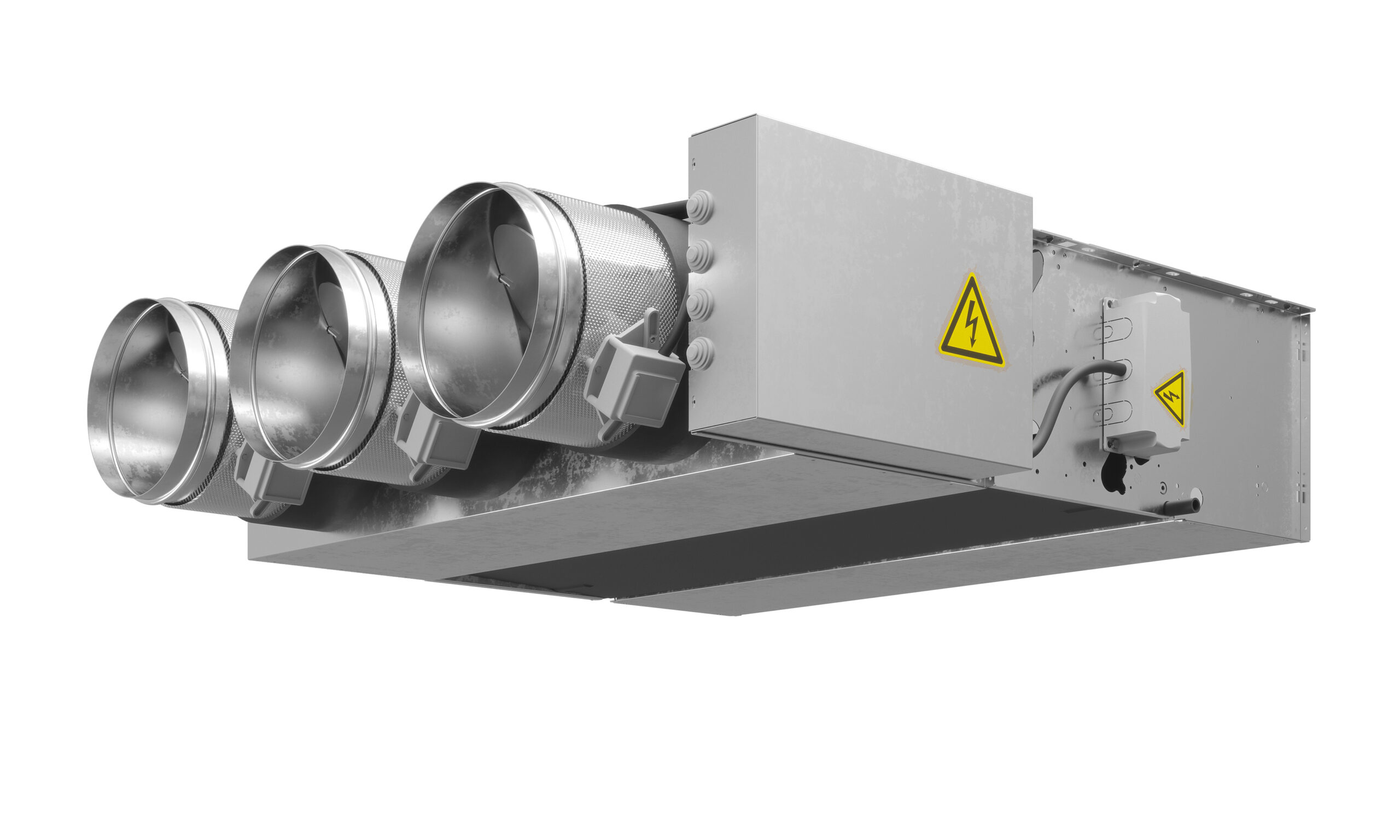 - La bandeja de recogida de condensados está fabricada en acero galvanizado aislado con espuma de poliolefina (PO) de 3 mm (clase M1).