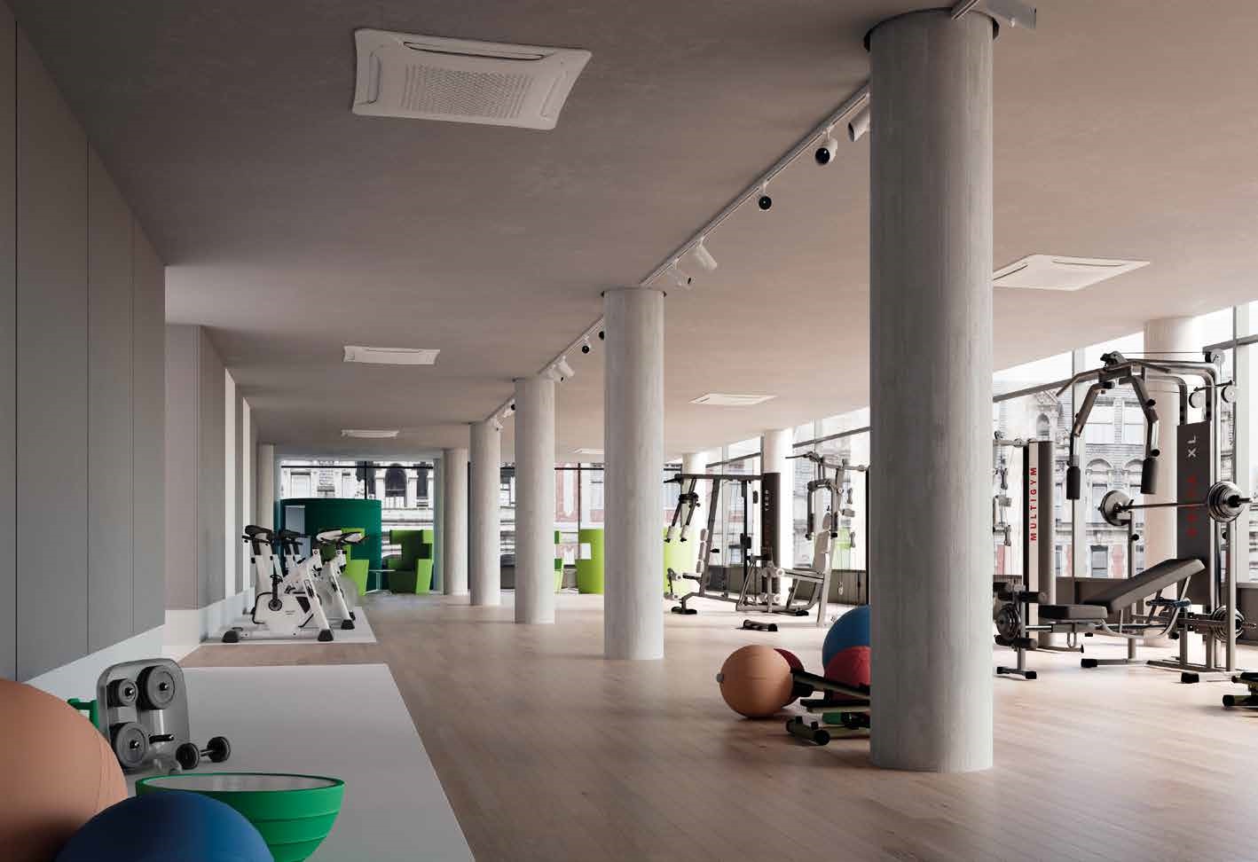 El Fancoil tipo casette a 2 tubos TECNA SABIANA SKYSTAR es el resultado de un extenso desarrollo para obtener un producto de vanguardia en términos de prestaciones, poco ruidoso y flexibilidad de regulacion. Toda la gama SkyStar presenta un diseño atractivo, facilidad de mantenimiento, garantizando prestaciones elevadas para grandes espacios. La rejilla de impulsión y difusión de aire presenta una estética de alto valor, absolutamente innovadora, con un grado de garantía y óptimas prestaciones gracias al estudio y verificación realizados en los laboratorios. El color propuesto por defecto es el blanco RAL 9003 mientras que otros colores son disponibles bajo pedido.