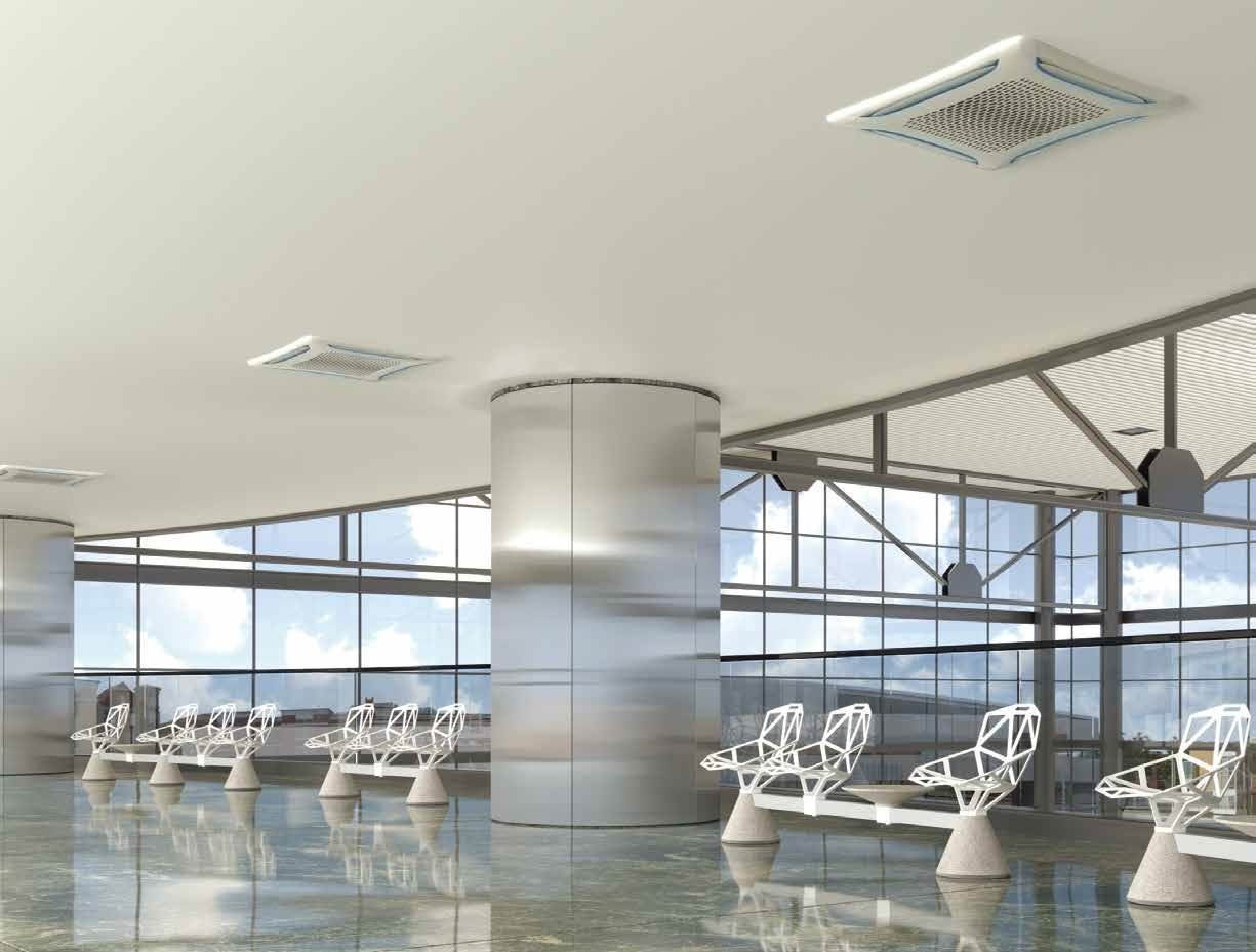 El resultado de un extenso desarrollo técnico y de diseño destinado a lograr el más alto nivel en términos de rendimiento, perfecto para cumplir con todos los requisitos de aire acondicionado de grandes áreas (aeropuertos, hoteles, centros comerciales, etc). De alta flexibilidad de control y fácil mantenimiento. Los tamaños más grandes permiten el mejor resultado en términos de sonoridad y relación precio / rendimiento.