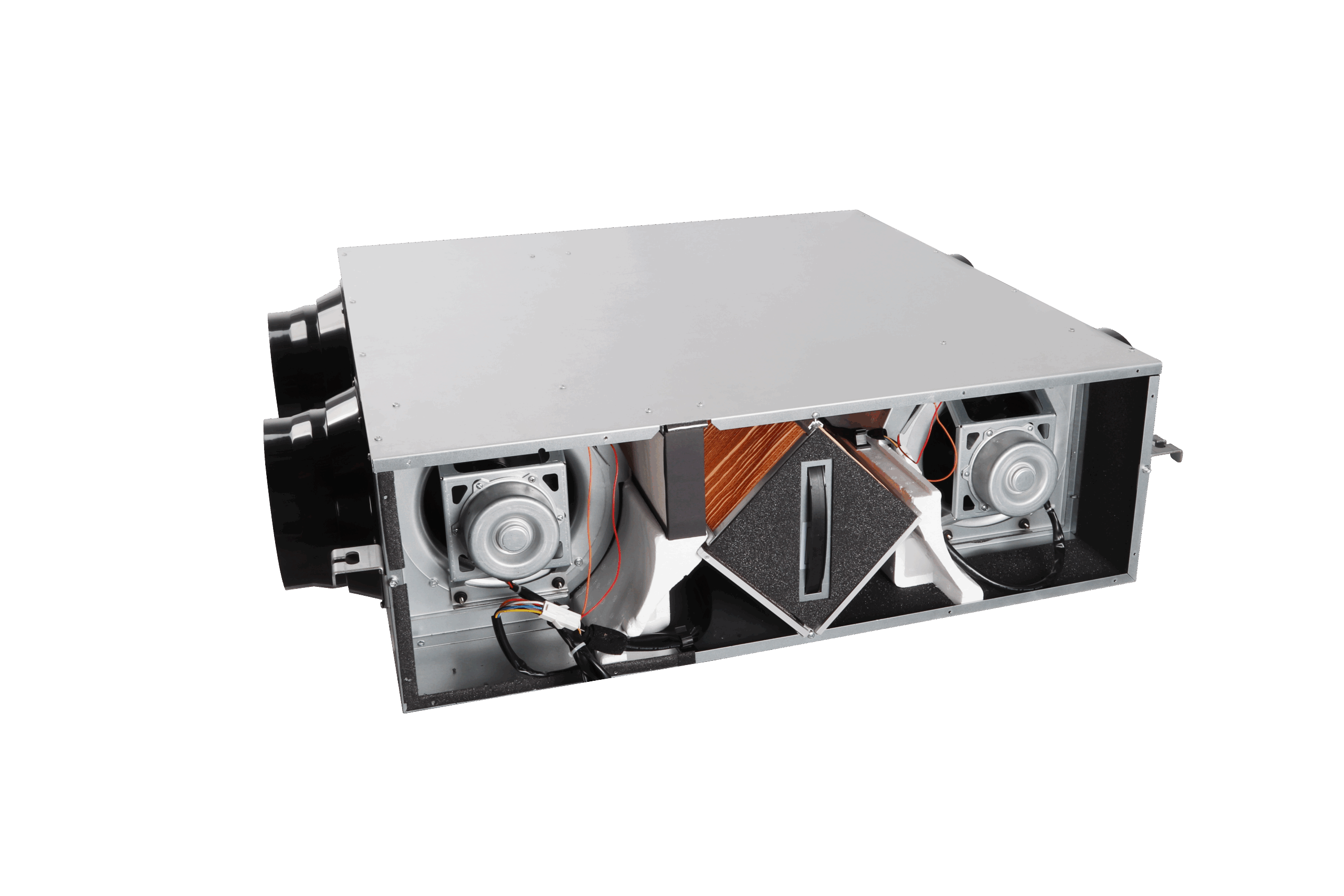 - Intercambiador entálpico de flujos cruzados, eficiencia hasta 82%.
