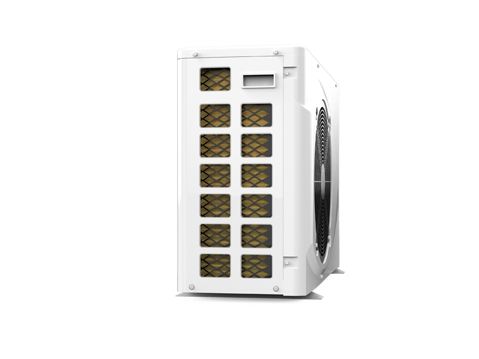 - Intercambiador de aire tratado con sistema GOLD FIN (protección anticorrosiva) que prolonga su durabilidad.