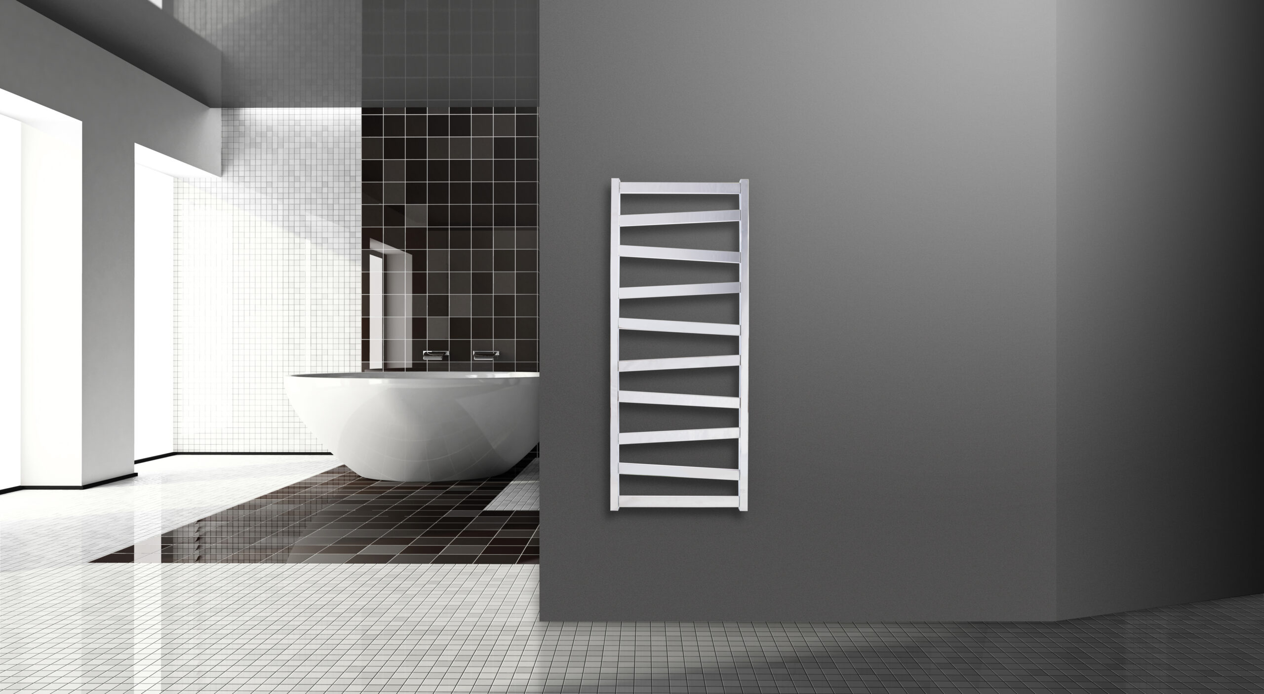 Radiador toallero CICSA Babel, de la gama Deco. Diseñado especialmente para colocarlo en el baño, es estético y muy útil, ya que se puede usar como calefacción y secatoallas. Fabricado en acero. Con versiones hidráulica y eléctrica. Potencia térmica de hasta 292 W. Sus medidas son de 800 mm a 1200 mm (alto) x 500 mm (ancho) y una distancia entre ejes de 70 a 90 mm. Disponible en color pulido mate.