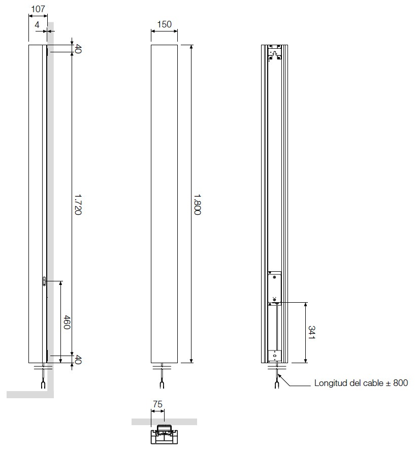 - Longitud Cable: 0.8 m (suministrado sin clavija, preferiblemente use un enchufe de pared fijo directo).