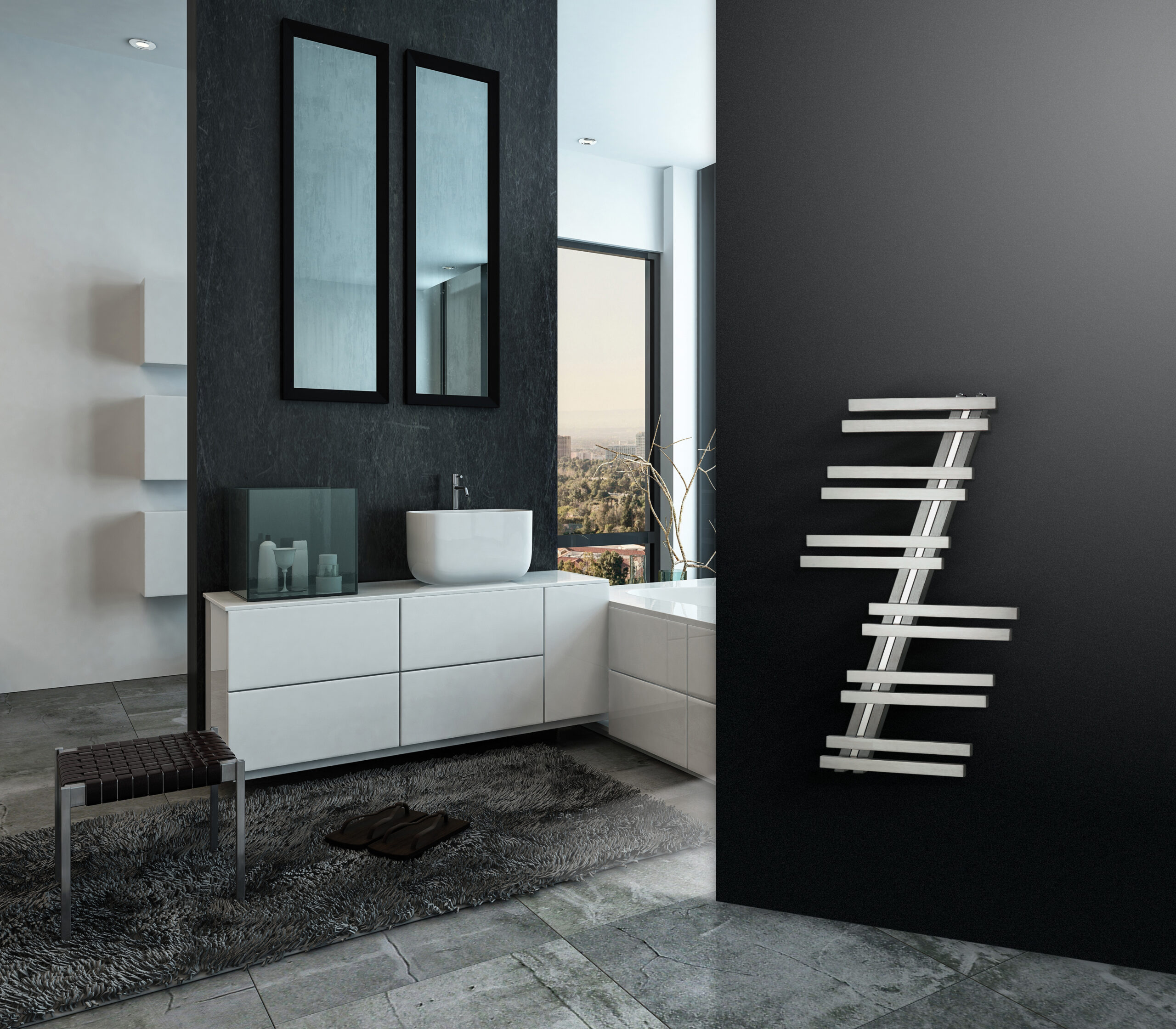 Radiador toallero CICSA Insigna, de la gama Acero Inox. Especialmente diseñado para su colocación en el cuarto de baño, ayudando a personalizarlo y a convertirlo en un lugar único. Fabricado en acero inoxidable. Con versión hidráulica. Potencia térmica de 499 W. Sus medidas son de 943 mm (alto) x 596 mm (ancho) y una distancia entre ejes de 50 mm. Disponible en pulido mate con tira central en pulido brillo.