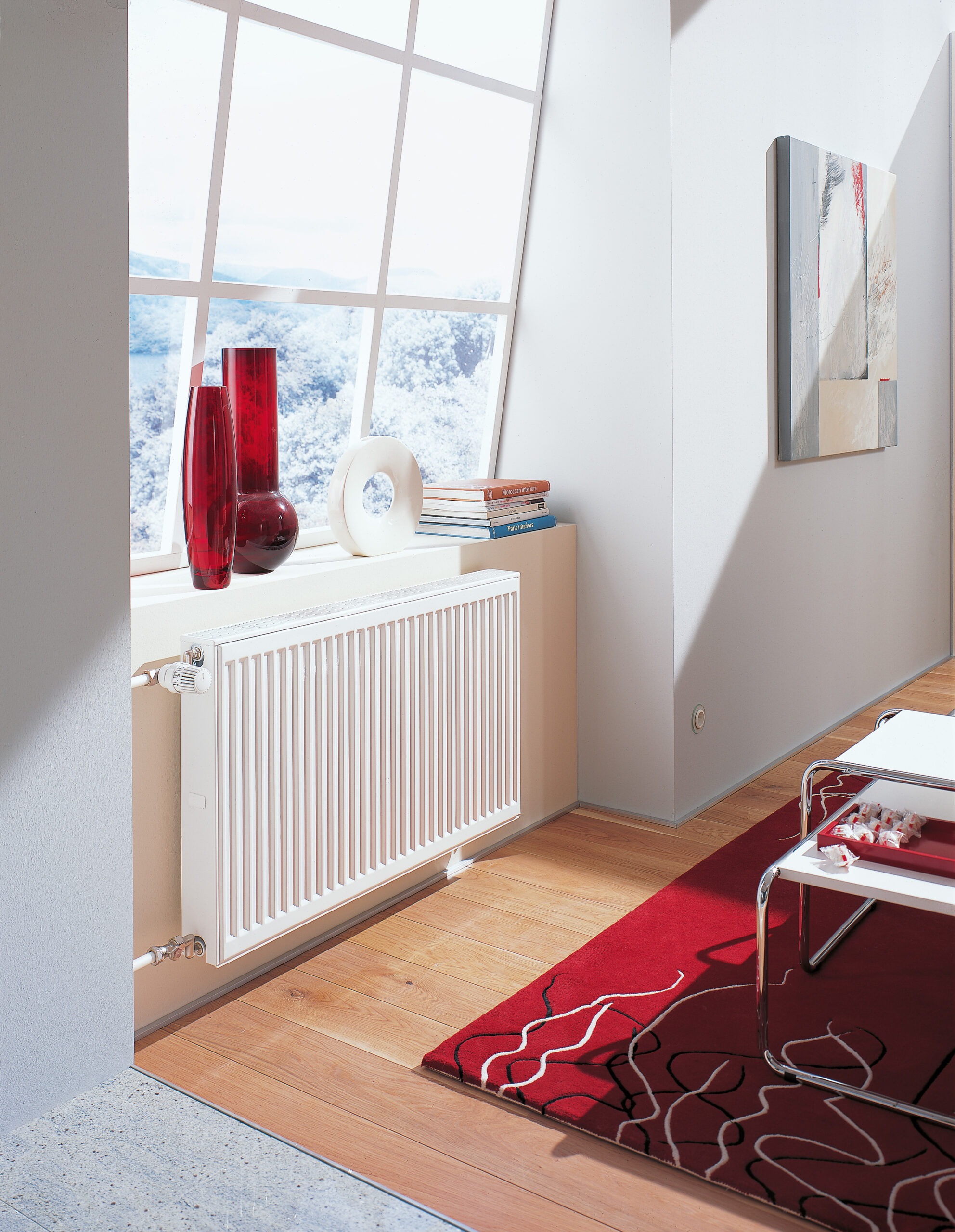 Los paneles de acero Kermi con tecnología therm-x2 se basan en el principio patentado x2 de flujo en serie: el agua fluye primero a través del panel frontal. Esto se traduce en hasta un 11% más de ahorro de energía, hasta un 25% menos de tiempo de calentamiento del radiador y hasta un 100% más de calor radiante confortable. Serie con distancia entre ejes estándar para la reposición de radiadores sin laboriosos trabajos de rotura y demolición.