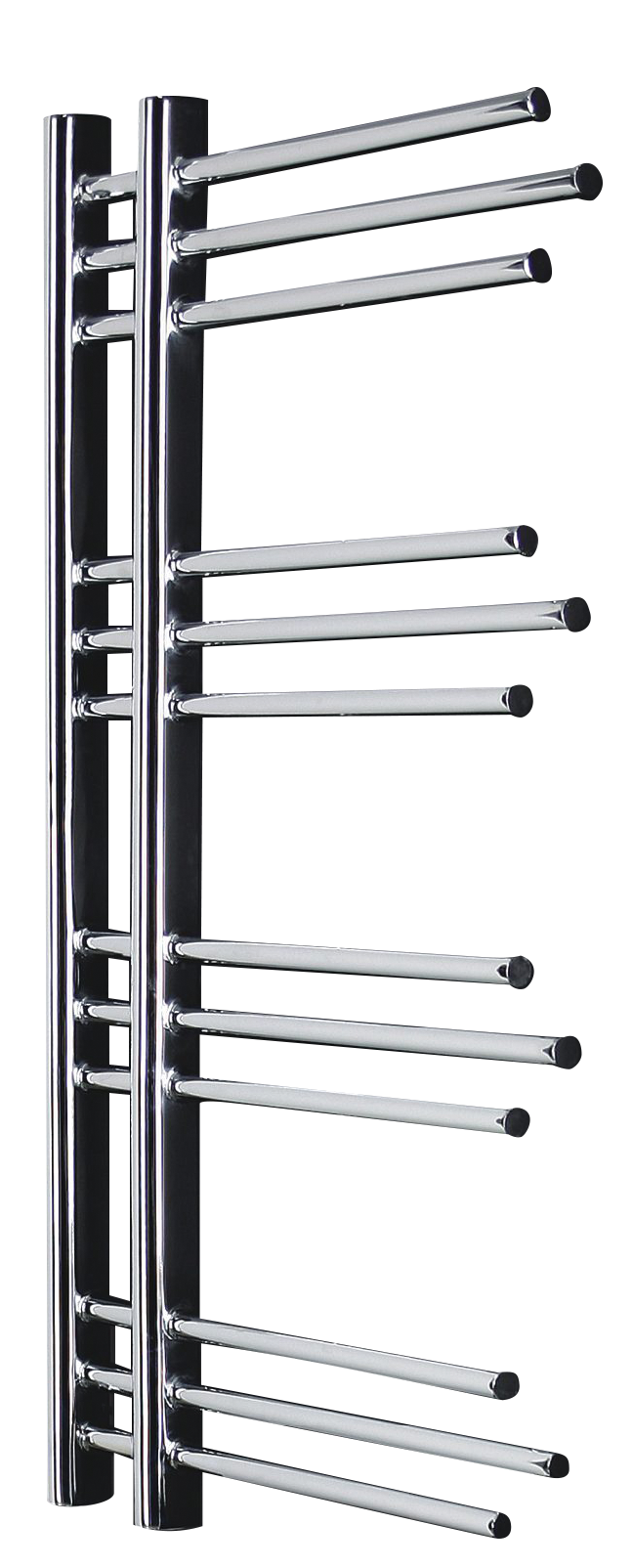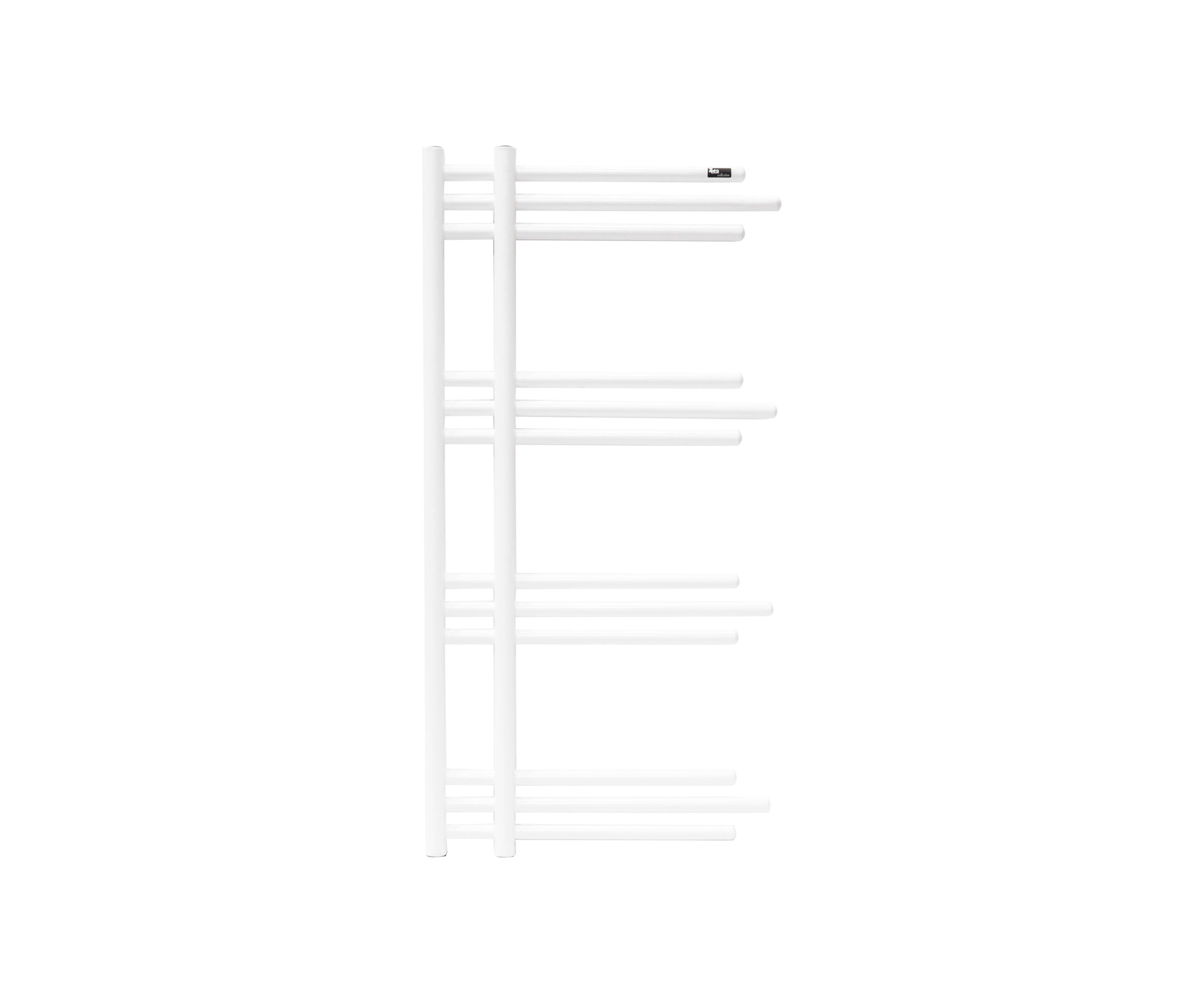 Radiador toallero decorativo CICSA RUBIN, de la gama Deco. Diseñado especialmente para colocarlo en el baño, es estético y muy útil, ya que se puede usar como calefacción y secatoallas. Fabricado en acero. Con versiones hidráulica y eléctrica. Con potencia térmica de 282 W. Disponible en medidas 1.000 mm (alto) x 500 (ancho). En colores blanco y cromado.