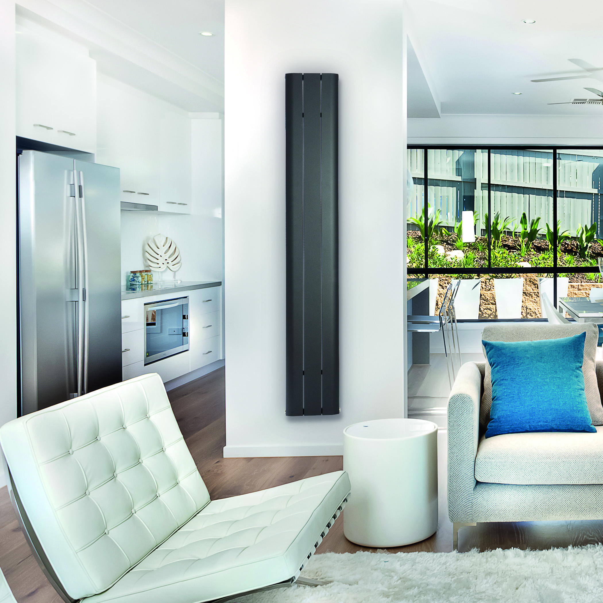 Radiador decorativo CICSA SEDA, de la gama Multi. Diseñado para cualquier lugar de la casa. Fabricado en aluminio. Con versión hidráulica (versión eléctrica no disponible). Con potencia térmica hasta 1.582 W. Disponible en medidas 1.800 mm (alto) x 280 mm a 660 mm (ancho). En colores blanco mate con textura y negro mate con textura.