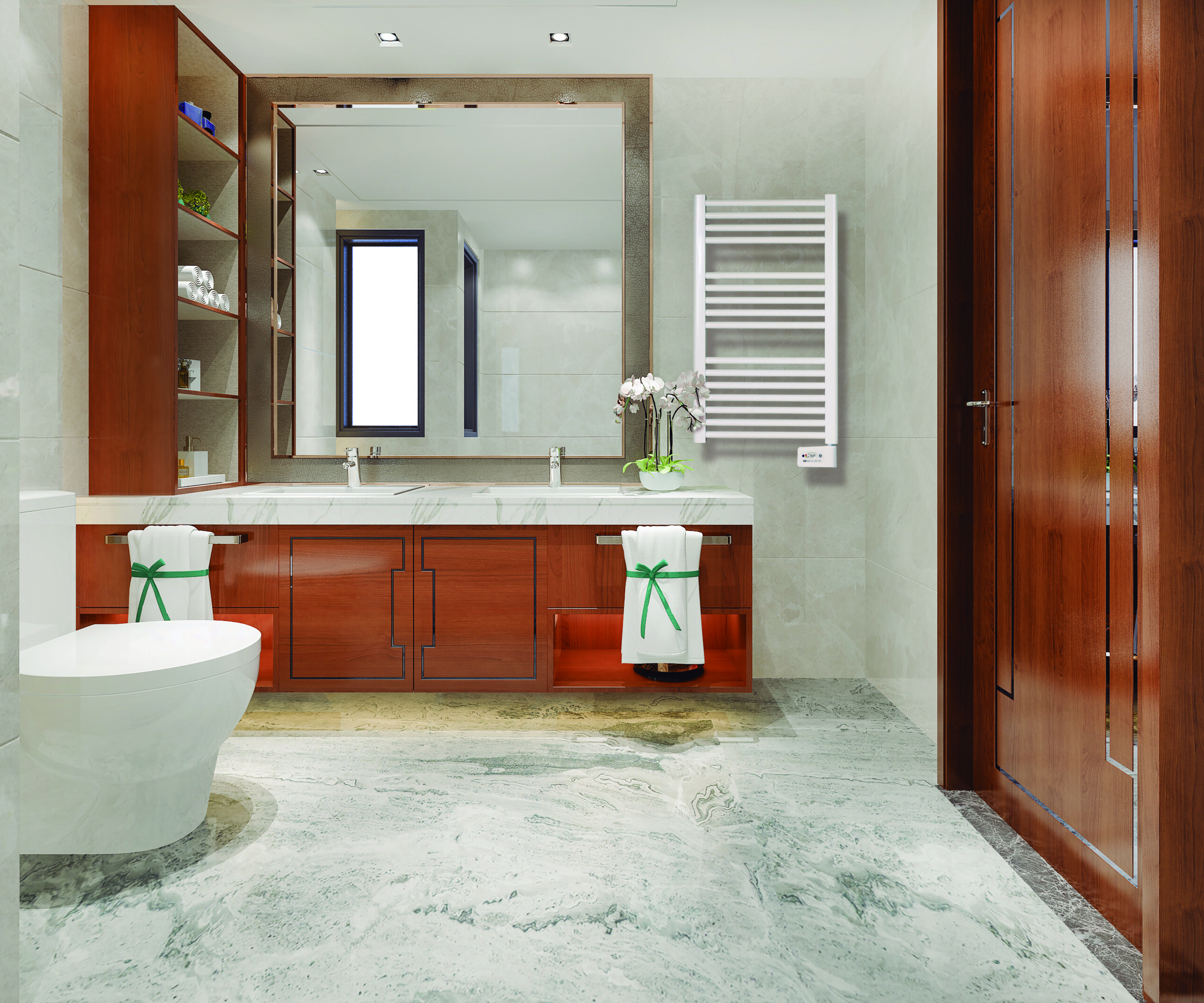 Radiador toallero eléctrico CICSA ZETA T TEC+, de la gama Classic. Ideal para baños, con cronotermostato TEC+ incorporado. Programable, detección de ventana abierta y diferentes modos de funcionamiento. Fabricado en acero. Potencia hasta 1.200 W. Versión eléctrica. Disponible en medidas de 800 mm a 1.800 mm(alto) x 400 mm a 600 mm (ancho). En colores blanco, negro mate y cromado.
