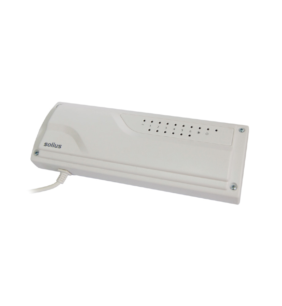 Control eficaz del sistema, las cajas de conexiones eléctricas SOLIUS ECO 6T le permiten activar y desactivar los actuadores/ cabezales térmicos en función de los termostatos ambiente. También le permiten controlar la bomba de circulación y la fuente de calor.